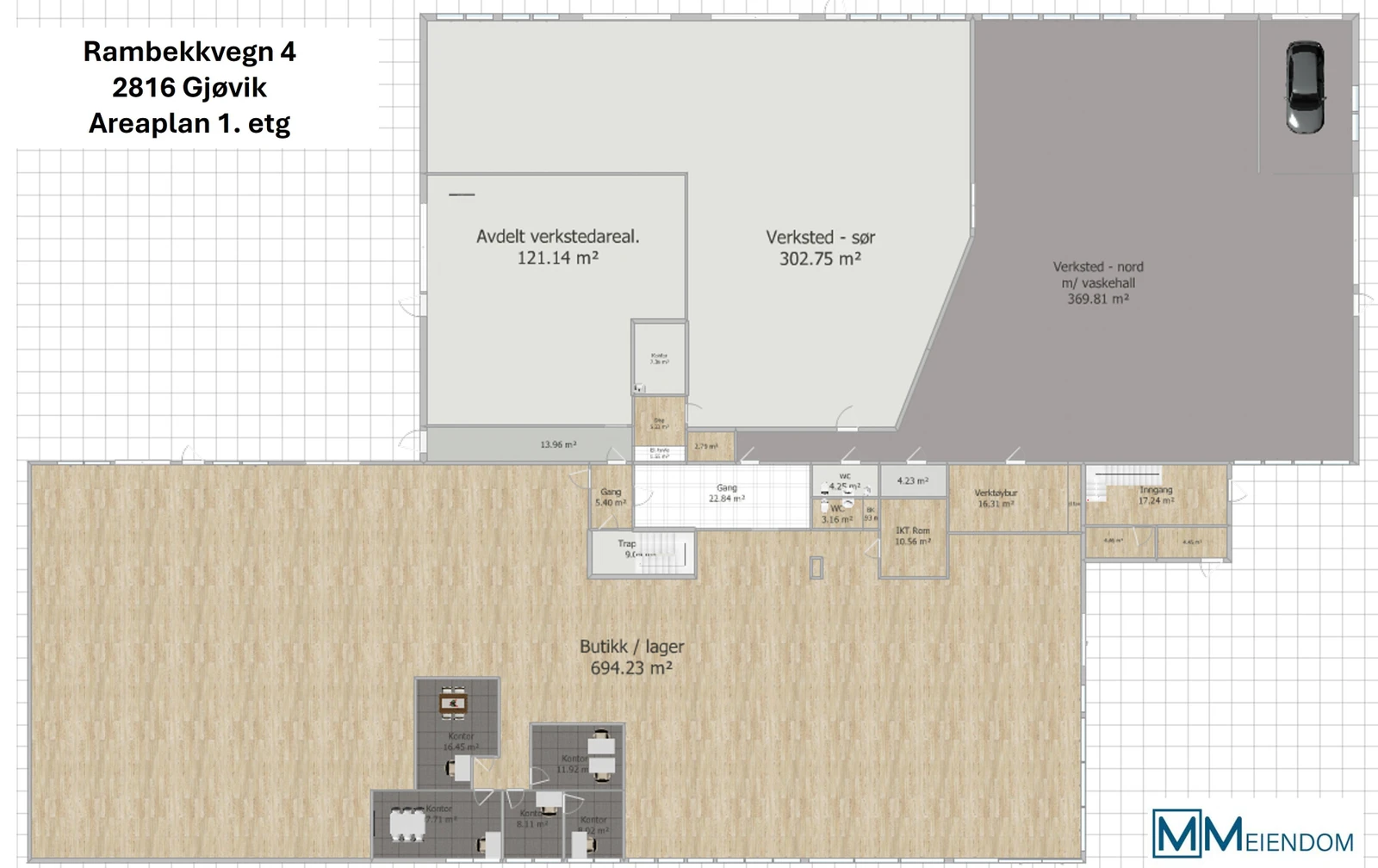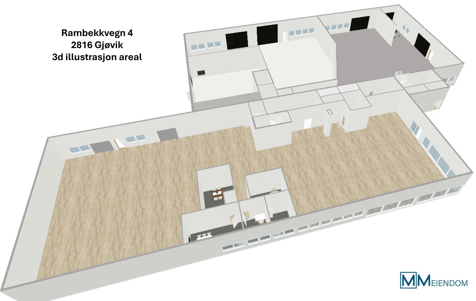 Butikkområdet er egnet også til kontorlandskap / kontorareal, der det kan lages flotte kontorer med utsikti østover mot Mjøsa. Bakre del av butiikkareal kan brukes til lager, eller tilpasses andre bruksområder.